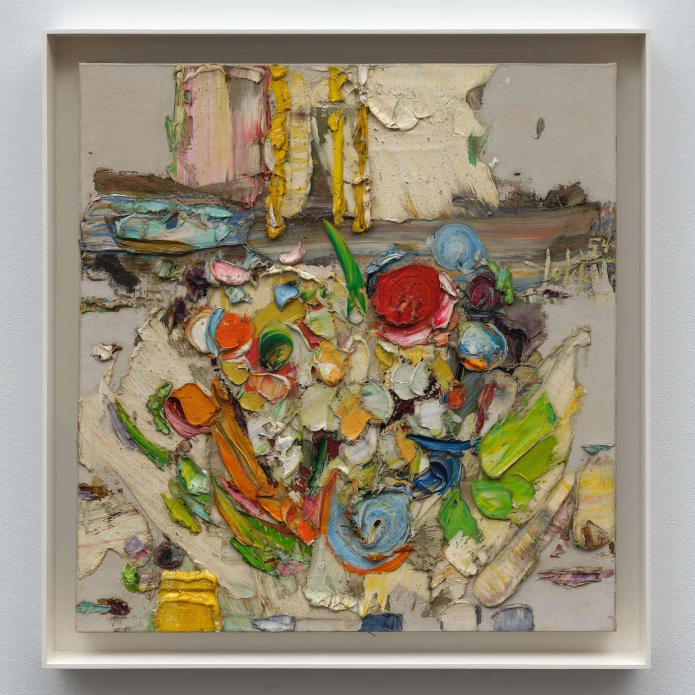 Having shifted from gallery to gallery over the course of several years, Yektai rarely showed after 1959. “Beginnings” wound through this quieter period in his work, where his tomato plant and his own solitude were among his most steadfast muses. In Tomato Plant (1964), a red orb tangled in dirt and vines marks the center. In one untitled 1969 piece, two lonely bowls of fruit rise slightly off the canvas. The pigments form a visual feast, plated and pressed together in dissonant striations, applied with a vigorous, unyielding cadence.