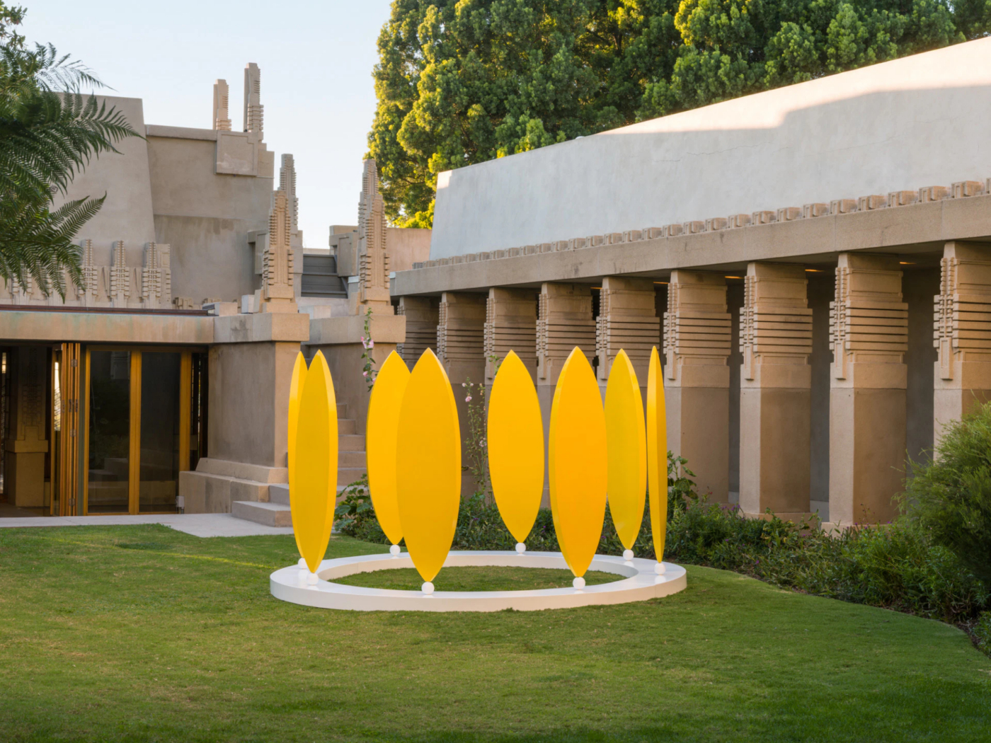 When oil heiress Aline Barnsdall commissioned Frank Lloyd Wright to design her Los Angeles residence, she asked that the hollyhock—a tall flowering plant known for its vertical stalks lined with large, rounded blossoms—serve as a guiding motif. Wright relocated from Chicago in the 1910s to oversee the project, which Barnsdall envisioned as the centerpiece of a broader cultural complex. Working with Rudolph M. Schindler and Richard Neutra, he devised a residence that would come to define an emerging strain of California modernism and earn designation as a UNESCO World Heritage Site. Barnsdall’s larger plan for a performing arts campus remains largely unrealized, yet the house endures as a landmark, its abstracted floral pattern coursing through the architecture from colonnade capitals to dining chairs.